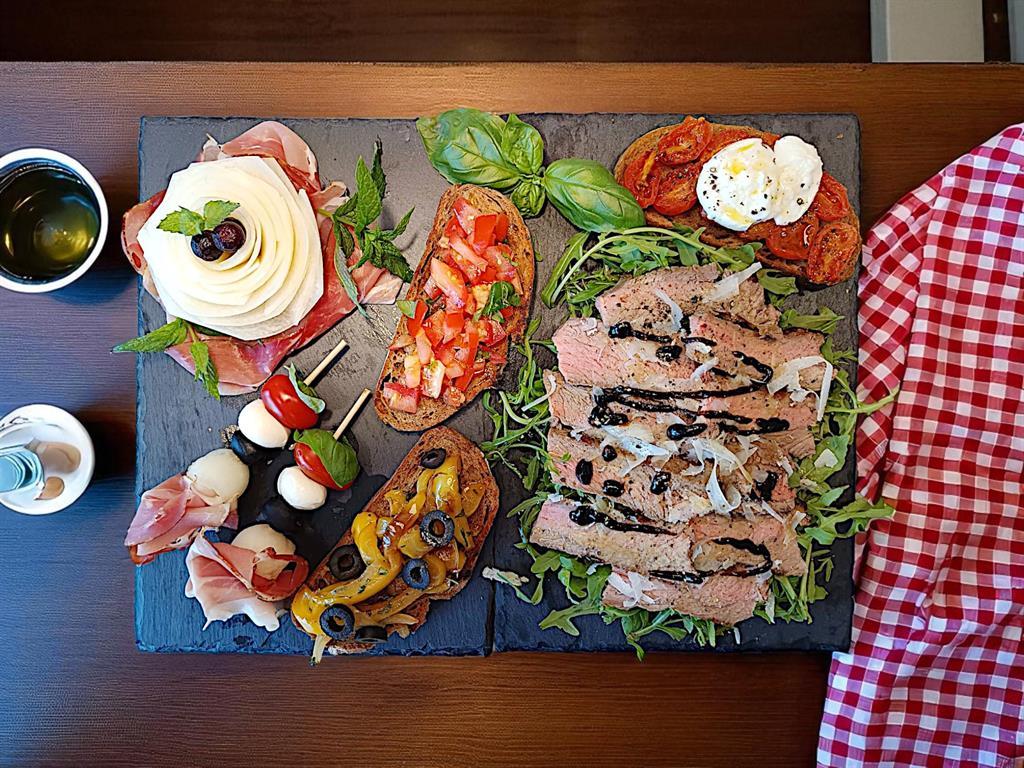• Bruschetta in drei Variationen: mit frischen Tomaten & Basilikum, mit Paprika, mit Cherrytomaten & Burrata